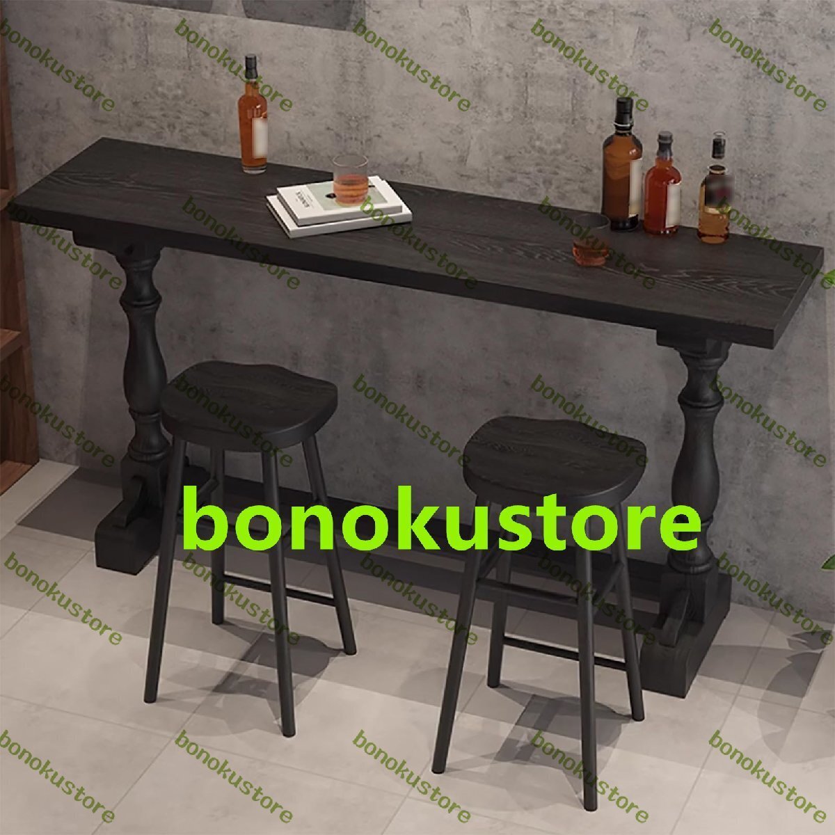 - アメリカのカントリーバーテーブル壁に立てかける無垢材のハイレッグロングテーブルバルコニーの窓際の狭いテーブル家庭用の黒いローマ