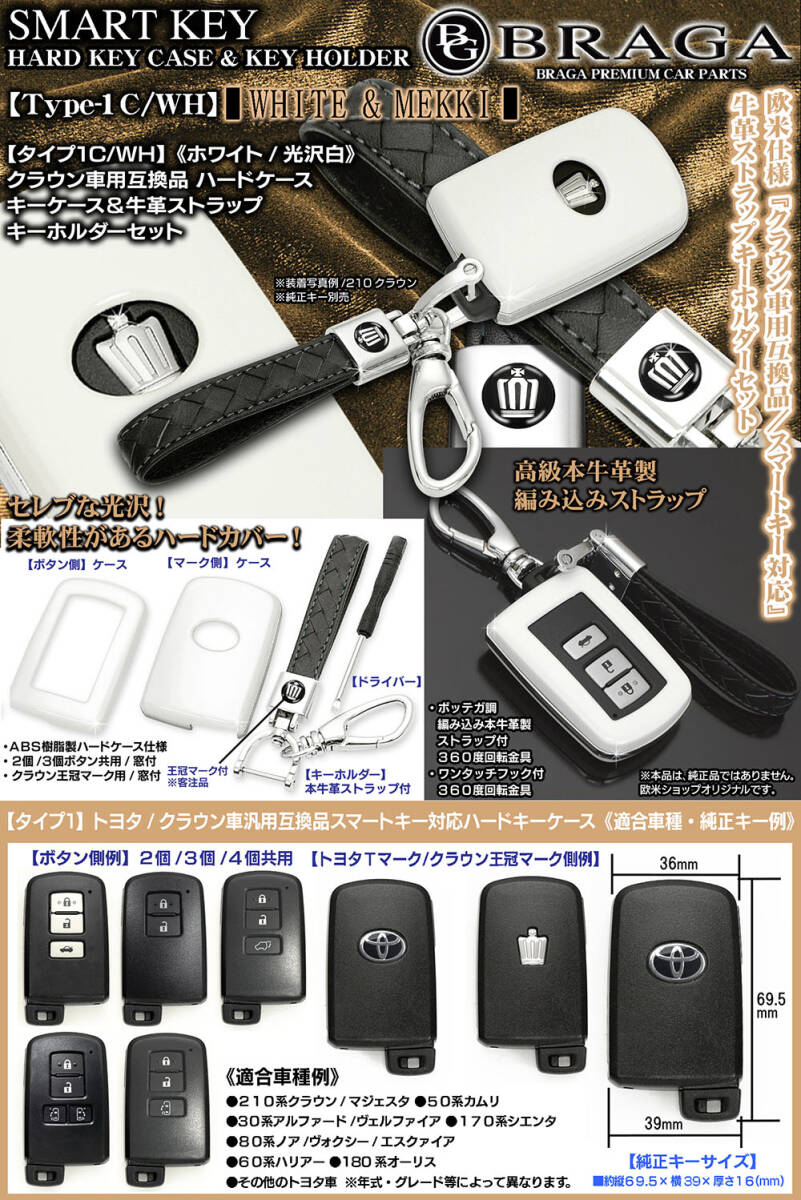 > タイプ1C・WH/210系クラウン・ロイヤル/ホワイト/光沢白/ハードケース キーケース/王冠エンブレム付/牛革製キーホルダーセット