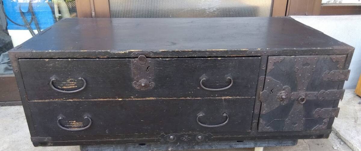 - 時代物 和箪笥 ローボード 約幅88×奥行き43×高さ29㎝