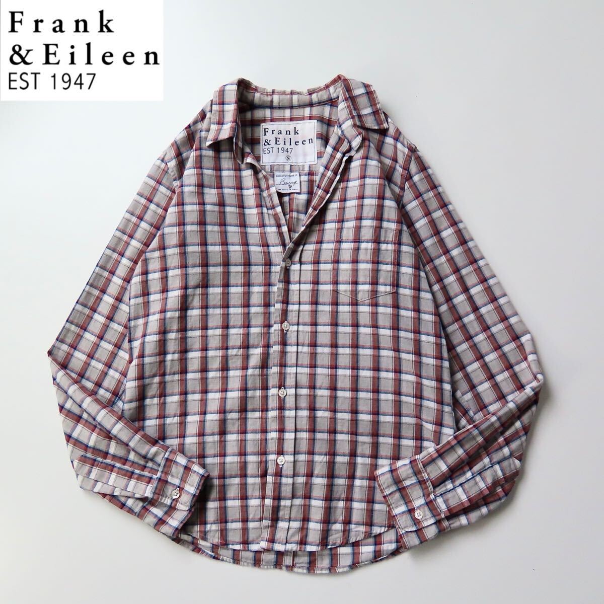 - USA製 Frank&Eileen フランク&アイリーン BARRY ヘリンボーンコットンチェックシャツ S グレー系 オープンカラーシャツ ブラウス