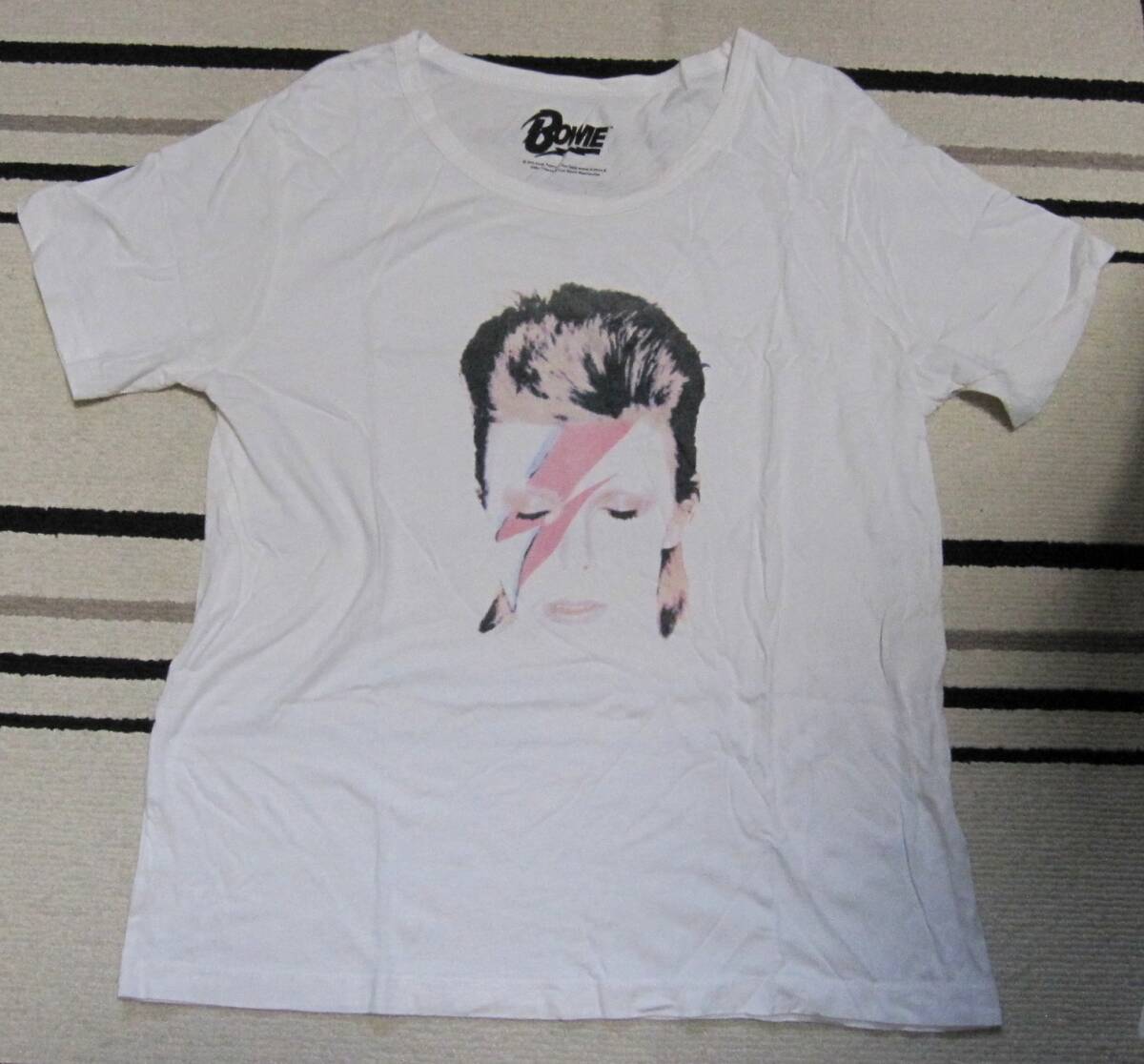- 送料無料!バンドTシャツ・ロックTシャツ☆David Bowie デヴィッド・ボウイ ☆GU Tシャツ☆カラー:白☆サイズ:L