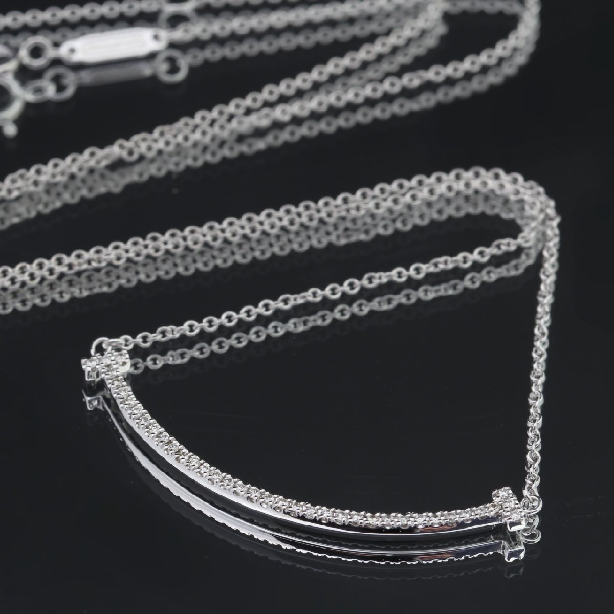 - 美品 ティファニー TIFFANY&CO.Tスマイル スモール ネックレス 750WG アフターダイヤ ネックレス【中古】9679