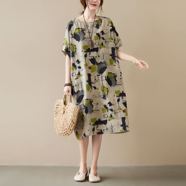 - ★★★レディース ワンピース ラウンドネック プリント柄 半袖 FX78