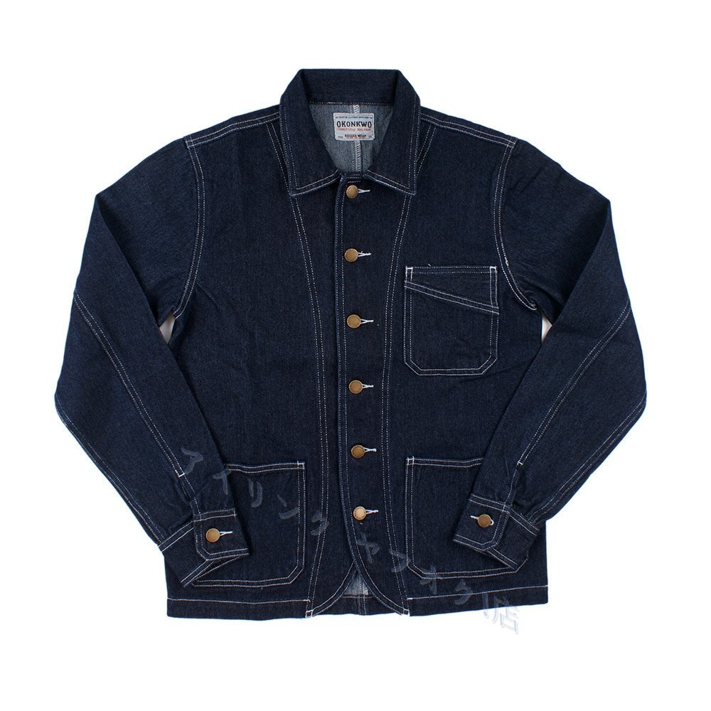 - ゆったりシルエットが気分 ヴィンテージ復刻コットンデニム ストライプカバーオールジャケット ワーク カジュアル アメカジ S~2XL 紺