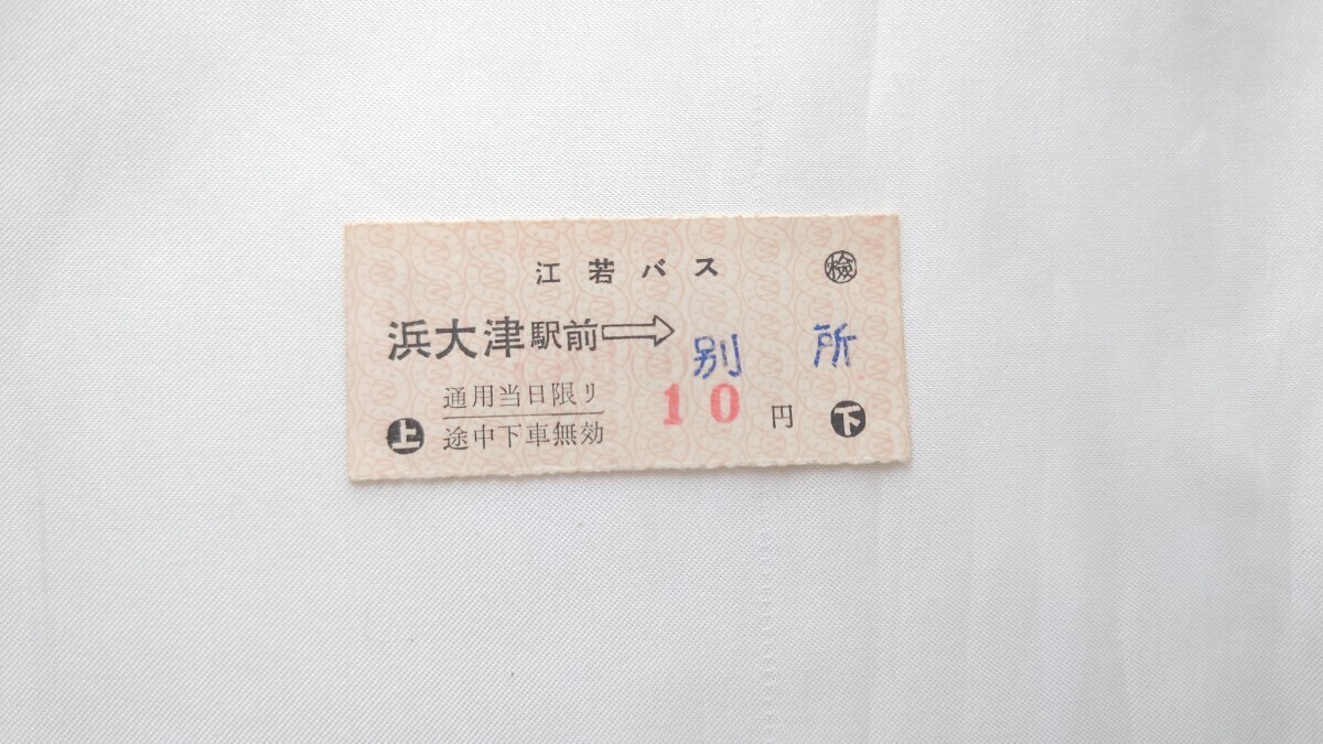 - △江若バス△浜大津駅前→別所 バス乗車券△昭和32年 軟券 補充券