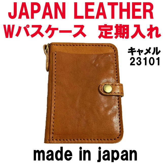- キャメル コルドレザー 本革 23101 Wパスケース 定期入れ JAPAN LEATHER 日本製