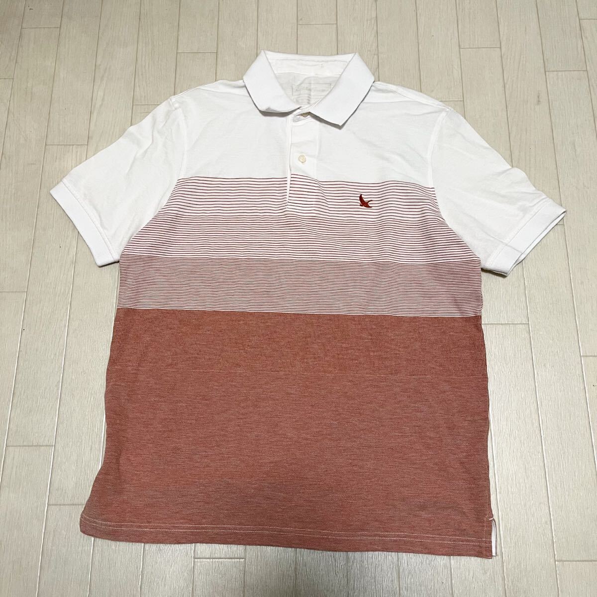 > 和722★ Eddie Bauer エディーバウアー 半袖 ポロシャツ ワンポイント刺繍 M ホワイト ブラウン メンズ