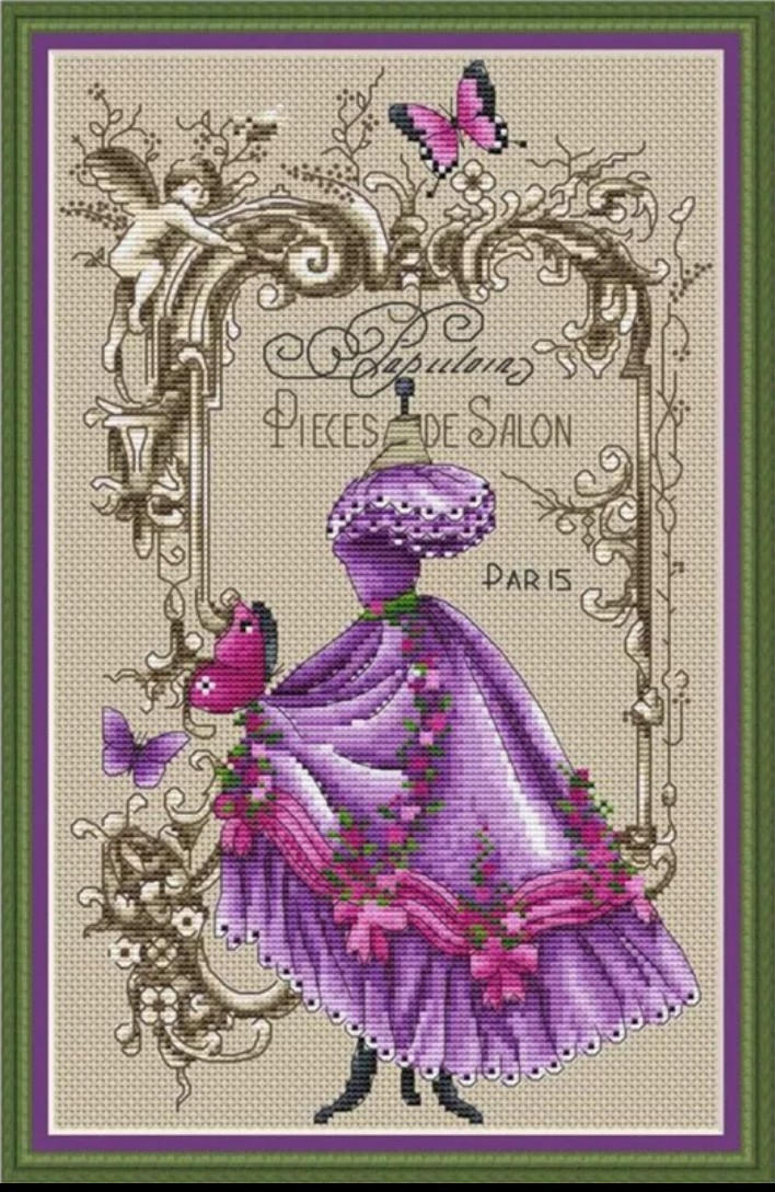 - クロスステッチキット テーラードショップ テーラー アメジスト ドレス バタフライ 蝶 26×39cm 14CT 刺繍
