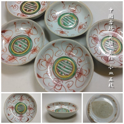 - 【T-366】中国古玩 呉須 赤絵 小皿5枚 茶道具 時代物 -1