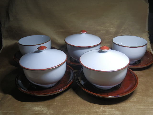 - たち吉 蓋茶托付き 湯呑 1客 紅金 瑞鶴 皿12cm 8x5cm