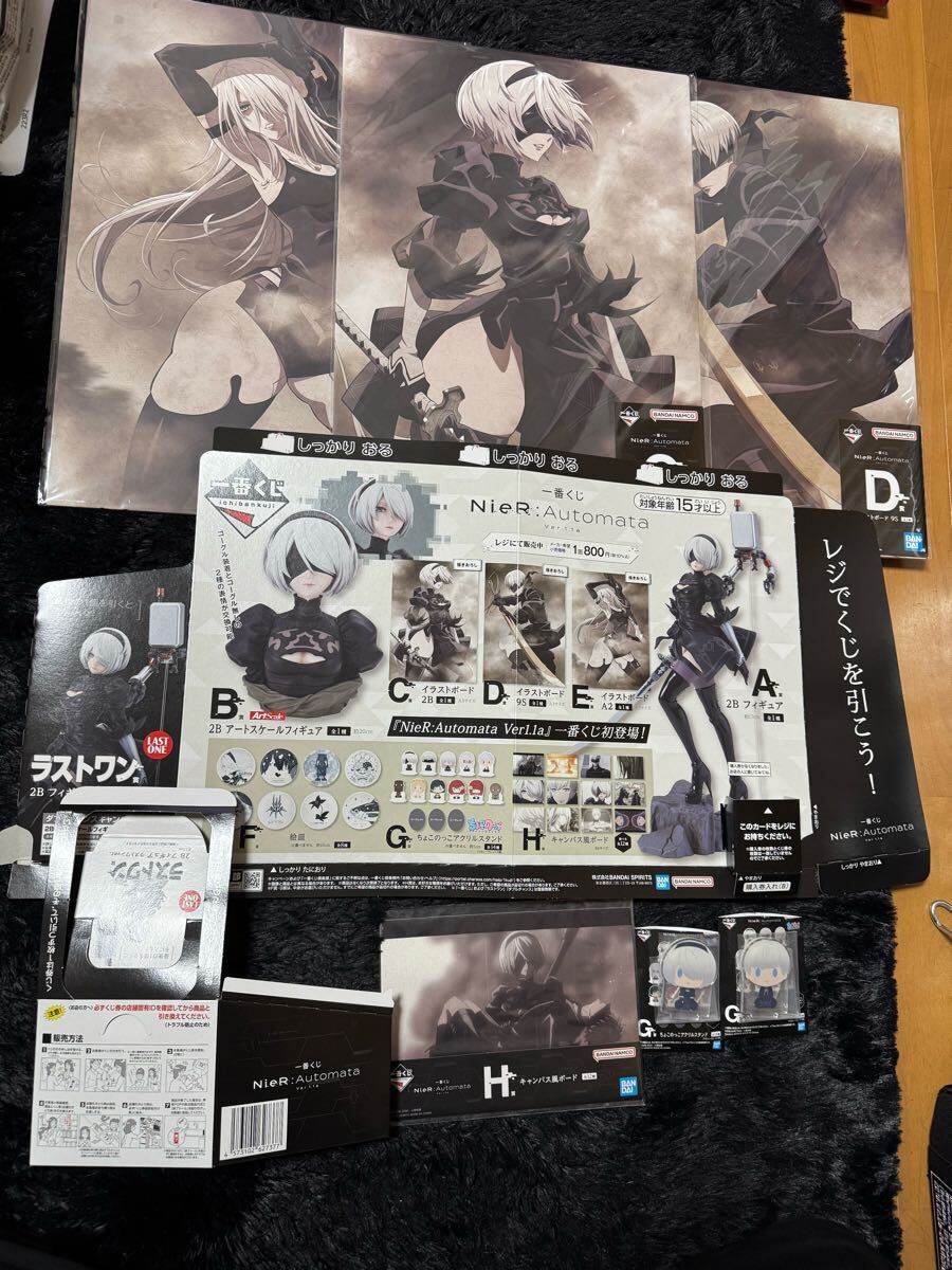 - 一番くじ ニーアオートマタ C賞 D賞 E賞 イラストボード H賞 キャンバス風ボード G賞 ちょこのっこアクリルスタンド POP くじ箱 NieR