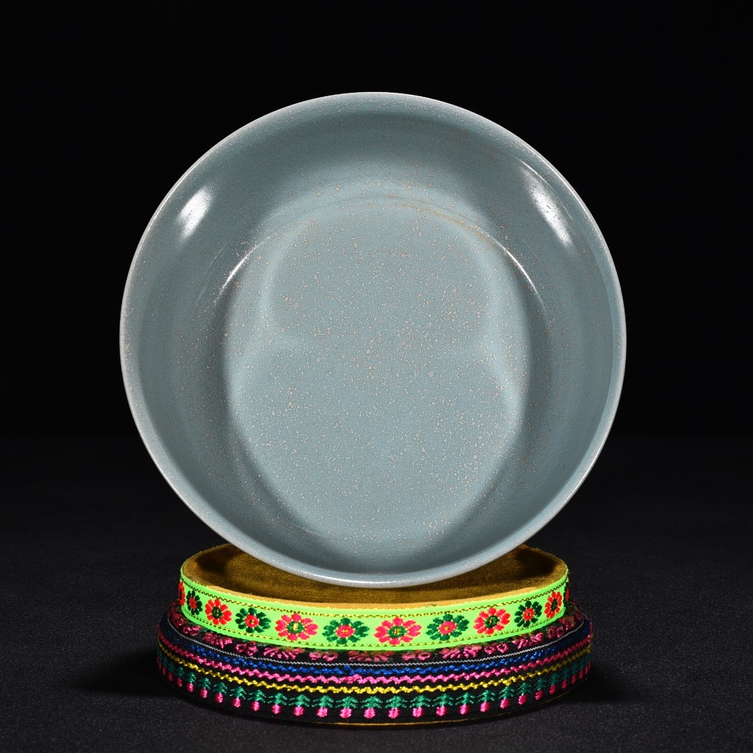 - TA117■中国古玩 唐物 宋汝窯 天青釉深腹洗 乾隆御題銘文 時代物 極上品■