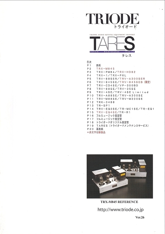 - トライオード TRIODE TARES 総合カタログ Ver.26(未使用美品)
