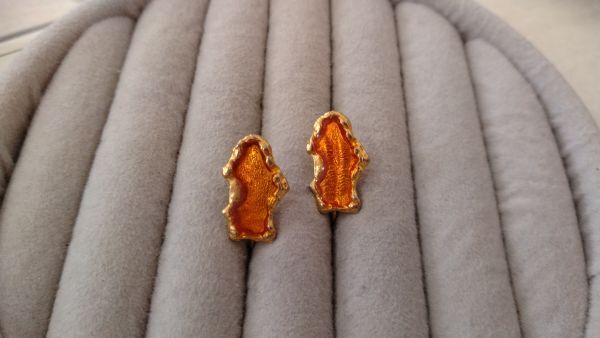 - オレンジ×ゴールドカラー 抽象的モチーフ イヤリング