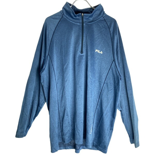 - 古着 メンズ2XL FILA/フィラ ハーフジップ トレーニングトップ 長袖 スポーツ ランニング ジム ネイビー/ホワイト/シルバー FM6278