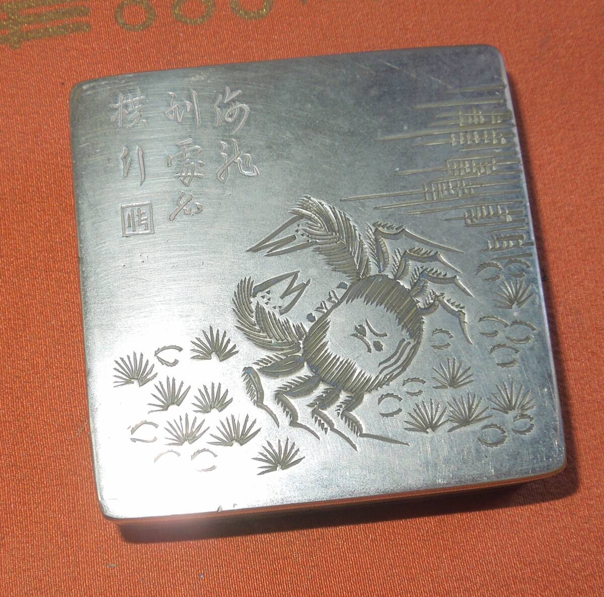 - 書道 白銅蟹彫墨合 蓋物 文房具 唐物