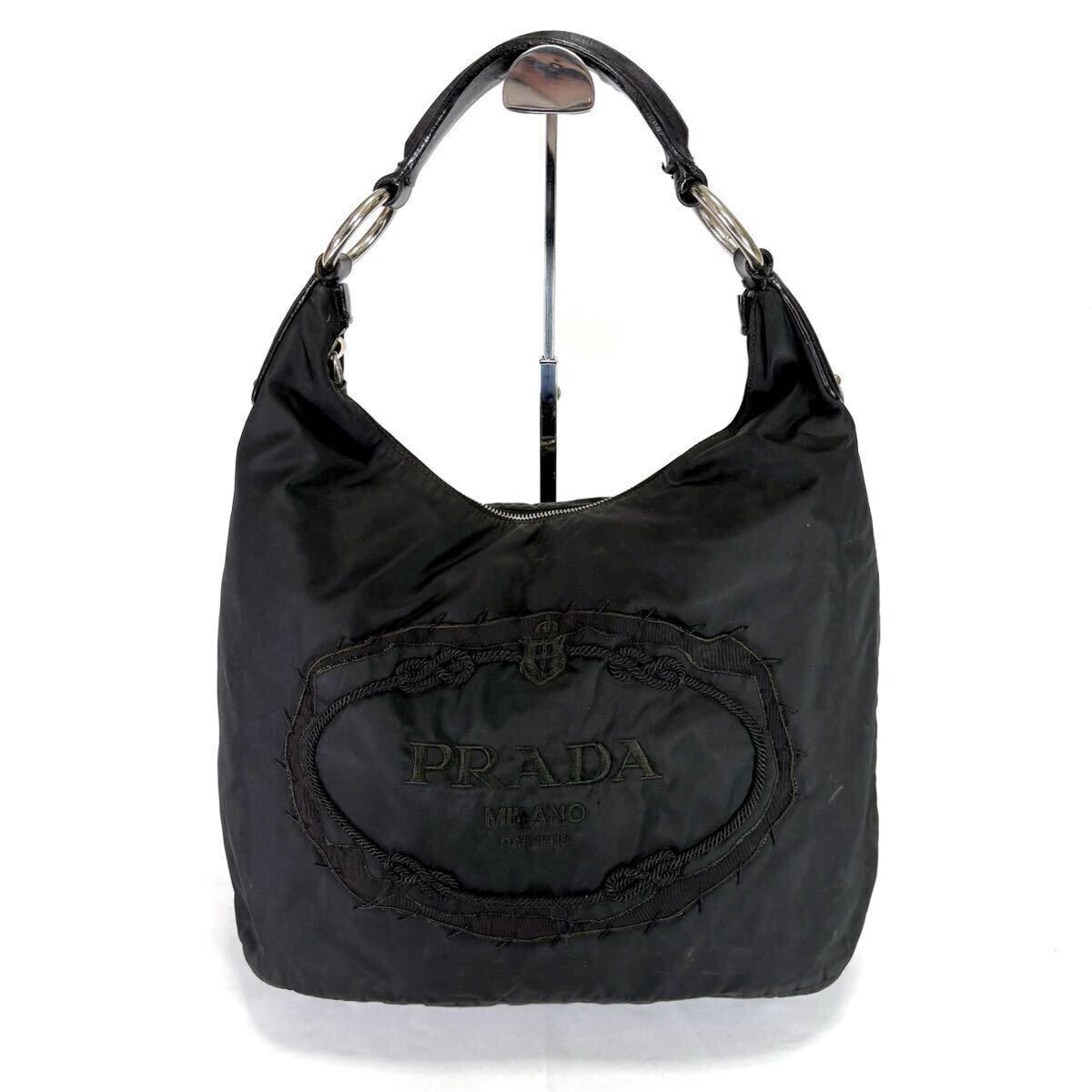 > PRADA プラダ ホーボーバッグ ソーホーバッグ 黒 ブラック テスートナイロン ワンショルダーバッグ 刺繍
