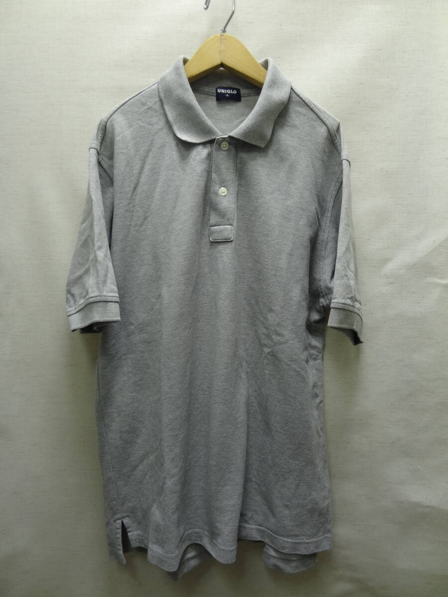 - 全国送料無料 ユニクロ UNIQLO 古タグ メンズ 鹿の子素材 半袖 杢グレー色 ポロシャツ Mサイズ