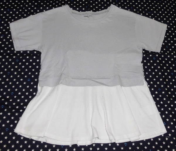 > ★中古 GLOBAL WORKの重ね着風半袖カットソー 140 薄いグレーとオフホワイト