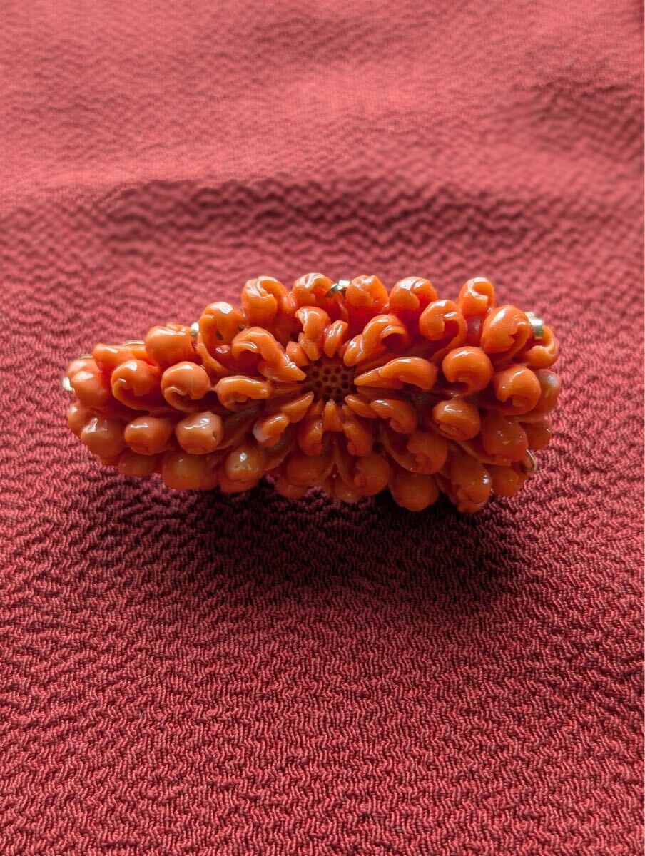 - 珊瑚 さんご ブローチ 昭和初期 29g 台座 18金 18K