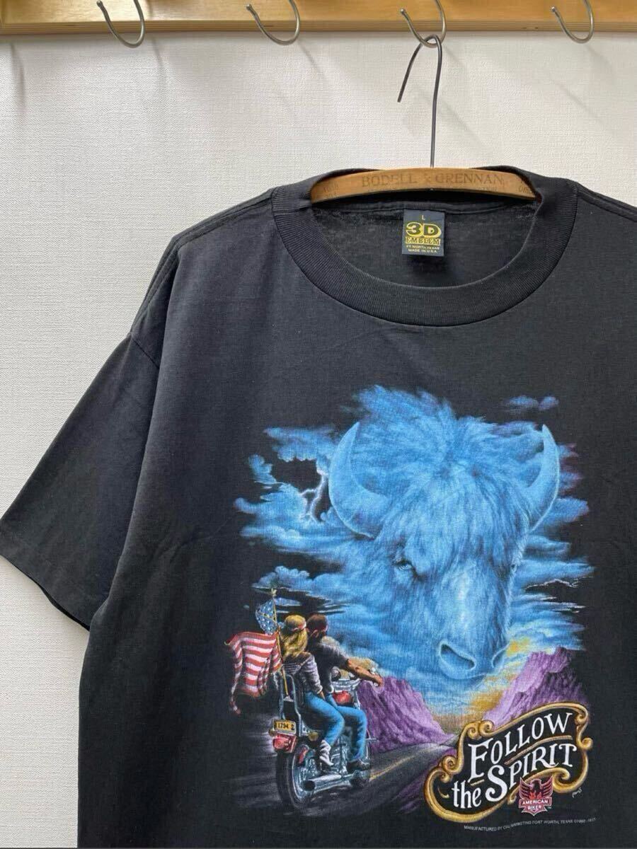 - sizeL 90s USA製 3D EMBLEM ハーレーダビッドソン ビンテージ Tシャツ エンブレム バッファロー アメリカ製 黒