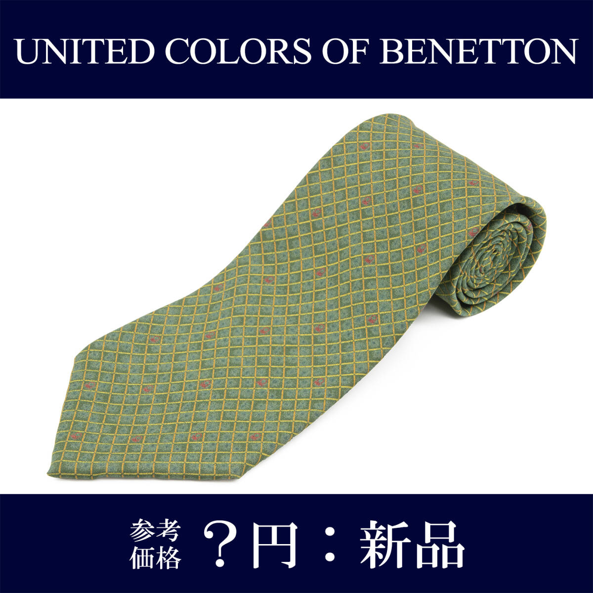 > 送料無料 ベネトン ネクタイ 新品 シルク 緑 グリーン イエロー 橙 ビジネス チェック 格子 シンプル マーク ブランド 珍しい 綺麗 N731・1