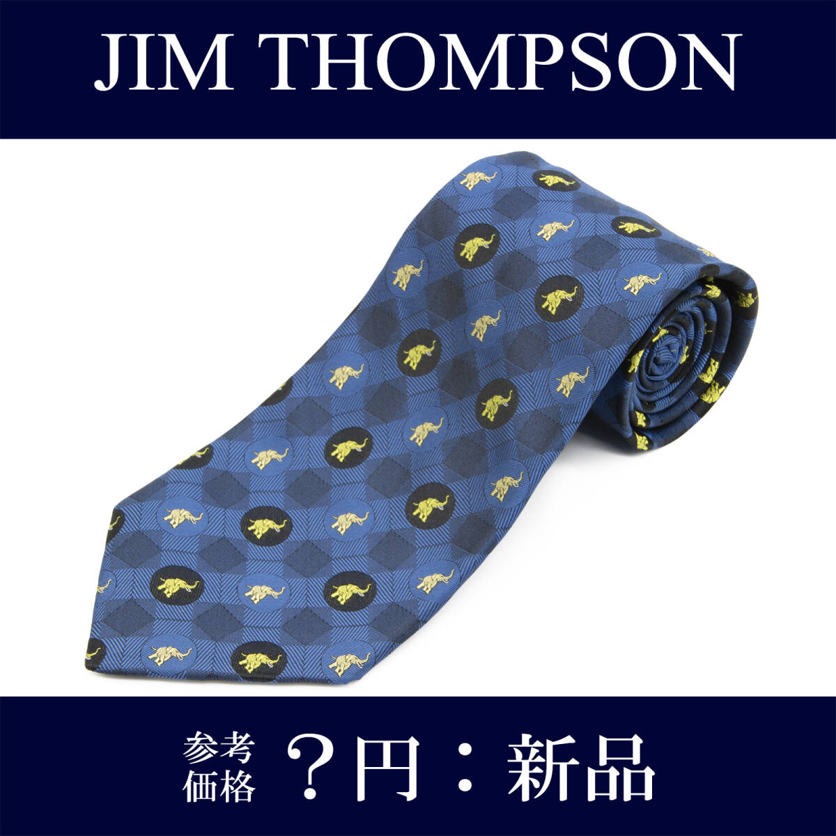 > 送料無料 ジムトンプソン ネクタイ ジャガードタイ 新品 ゴールド 青 ネイビーブルー 小紋 像 動物 アニマル 円 四角 マーク ブランド N950