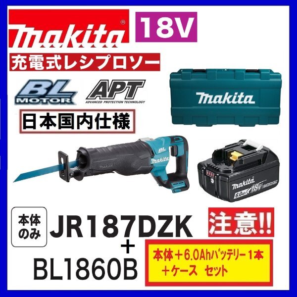 > マキタ 18V 充電式レシプロソー JR187DZ本体+ケース+6.0Ahバッテリー[BL1860B]1本 【充電器別売】 ■安心のマキタ純正/新品/未使用■♪