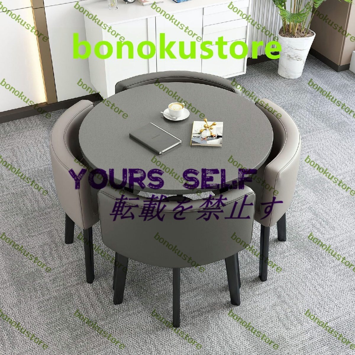 - 丸テーブルセット4人用 ダイニングセット 食卓セット ダイニングルームとキッチン用 モダンデザインテーブルと椅子セット 80*80*75cm