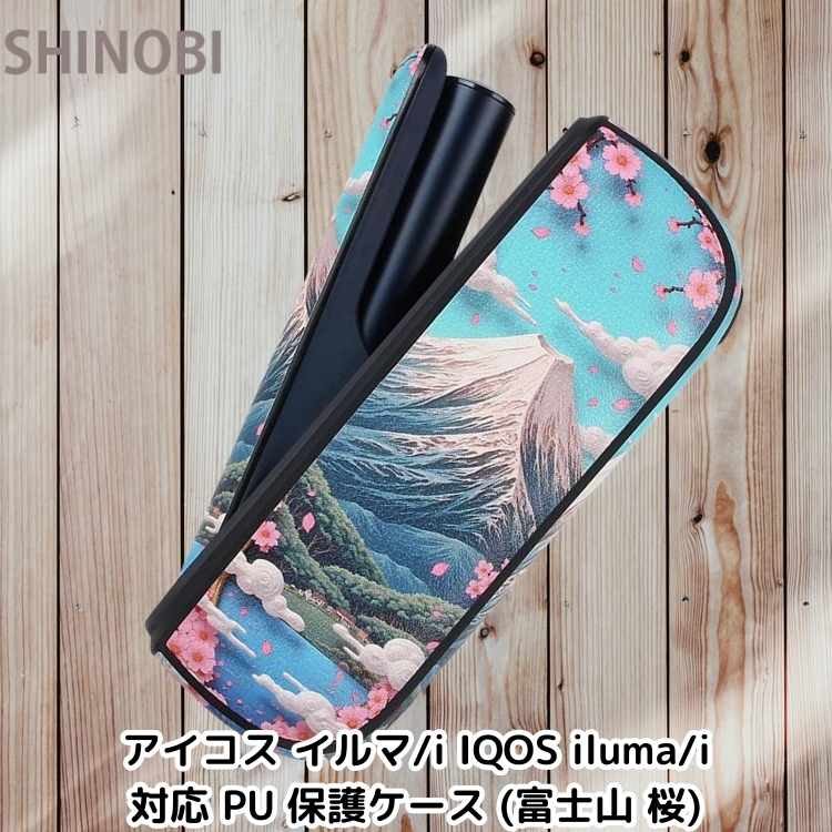 - アイコス イルマ/i IQOS iluma/i 対応 TPU+PU素材 保護ケース ケース+ドアカバー (富士山 桜)