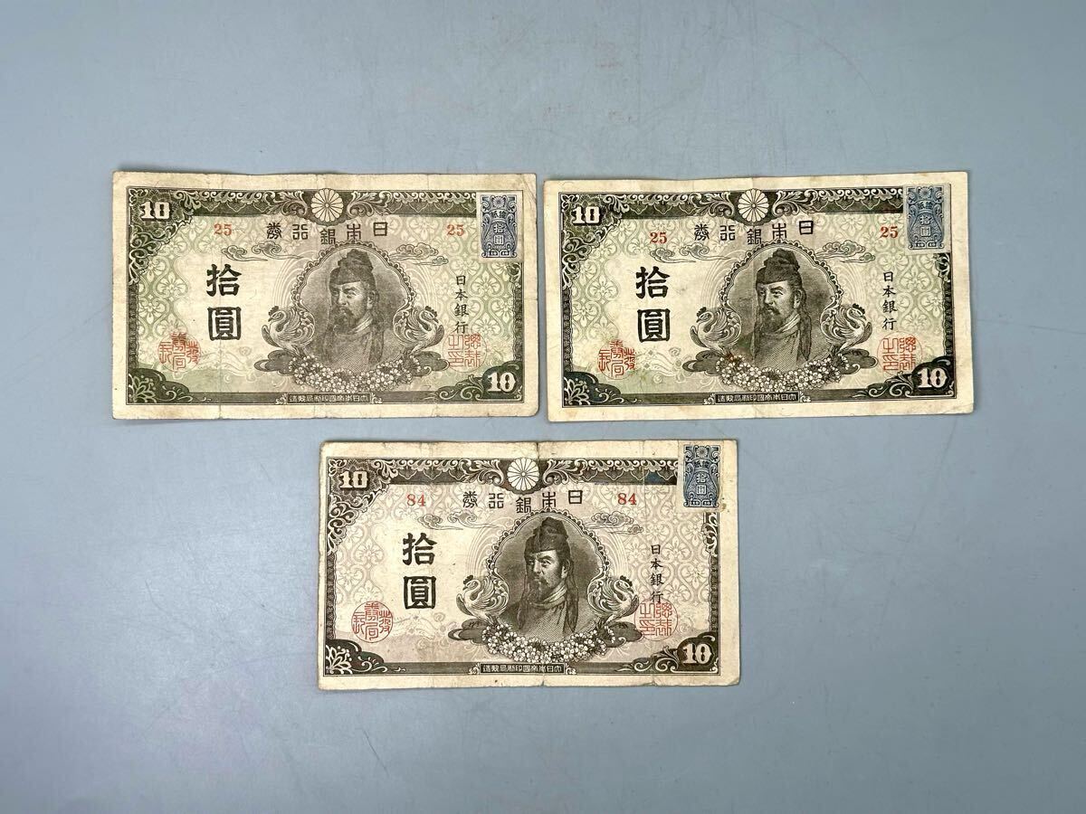 - 3枚セット 日本銀行券 拾圓 日本紙幣 古紙幣 旧紙幣 聖徳太子 コレクション