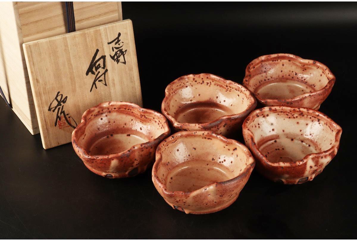 - [ギャラ藤]山田和 作/志野向付5客/共箱/G-1808 (検索)骨董/食器/和食器/向付/小鉢/銘々皿/割烹/置物/懐石