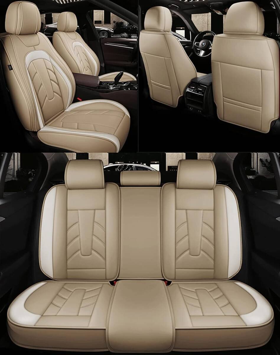 - ■新品■トヨタ ハイエース 200系 (2012年5月~)用 Karstry 高品質レザー製シートカバー前後セット (ベージュ×ホワイト)