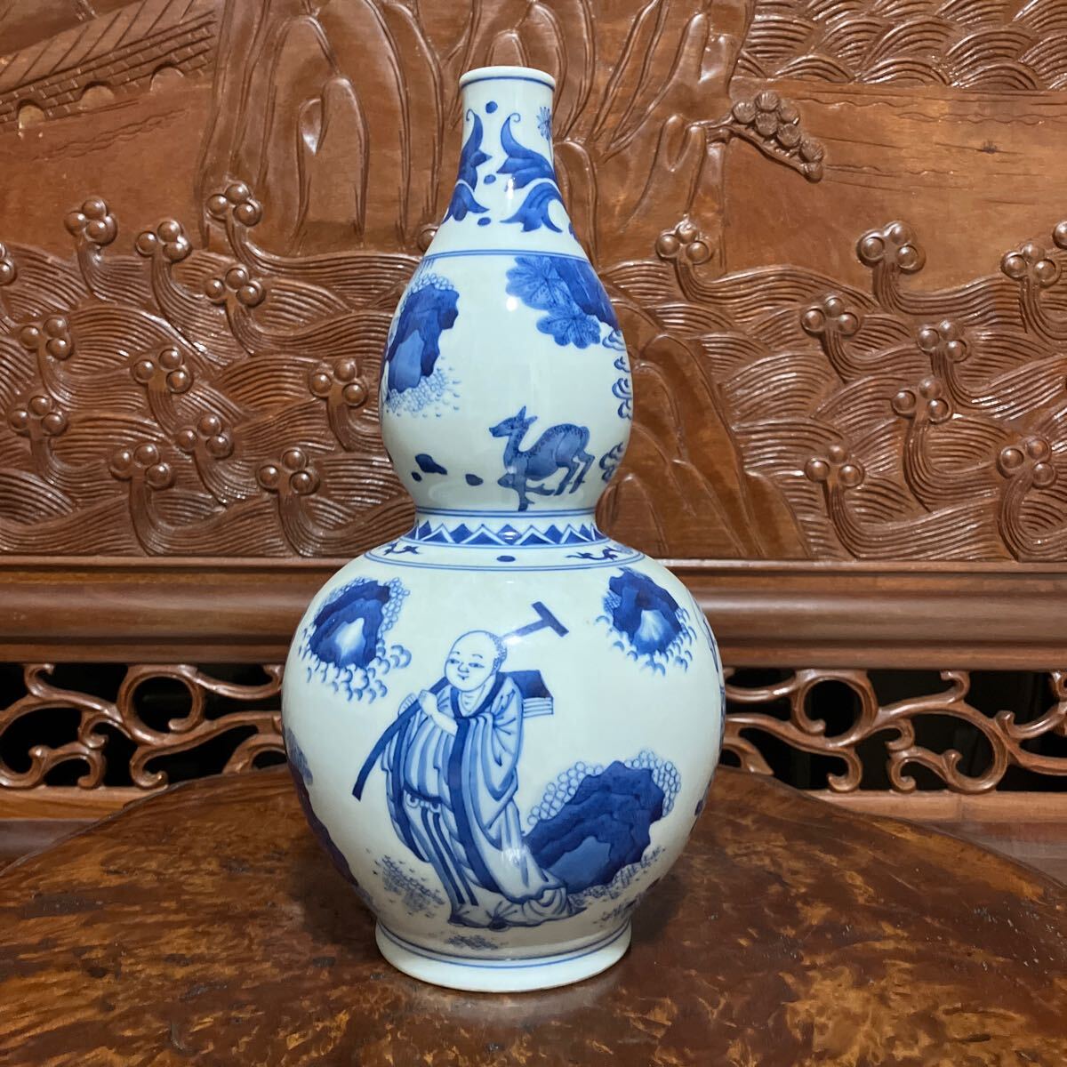 - 【澄今堂】中国美術 唐物 人物文 染付花入 古美術 旧家蔵出 時代物
