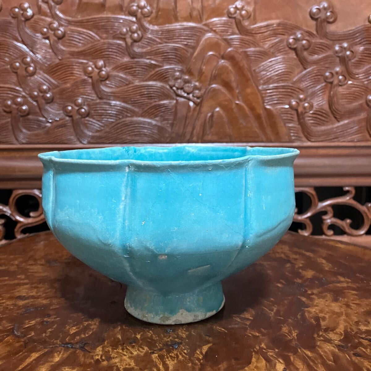 - 【澄今堂】美術館級 藍釉輪花大鉢 コレクター放出品 修理あり 骨董品 古美術 旧家蔵出 時代物