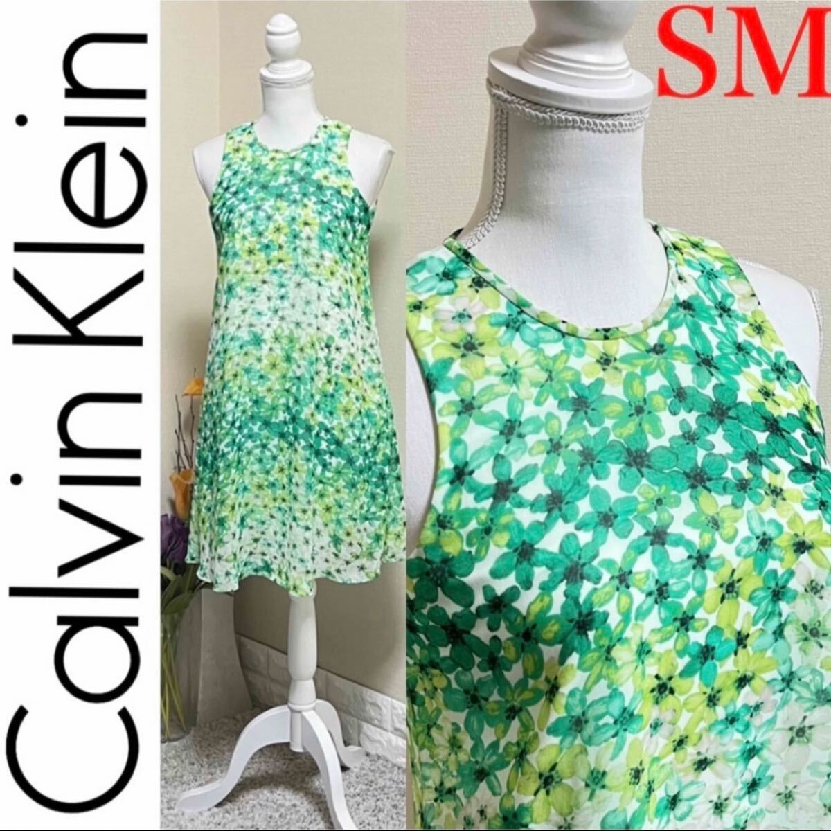 - 極美品!カルバンクライン Calvin Klein ジョーゼット 小花柄 ワンピース SM 2 グリーン