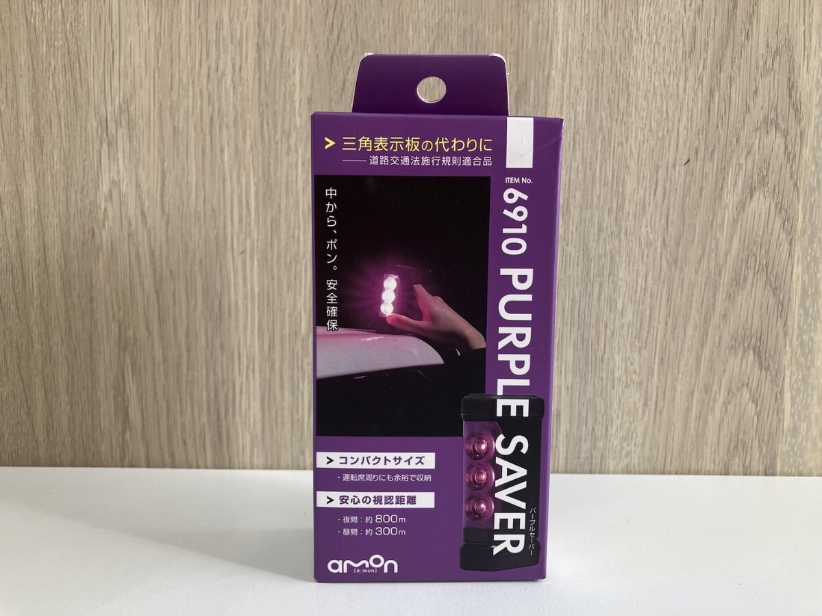- 【未使用品】amon エーモン 6910 パープルセーバー 三角表示板 停止表示灯 電池式 箱付き