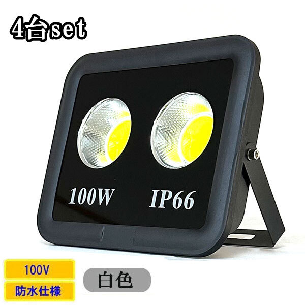 - LED投光器 LEDライト COBチップ 100W 1000W相当 防水 防犯 AC100V 3Mコード 屋外 白色 【4個】 送料無料