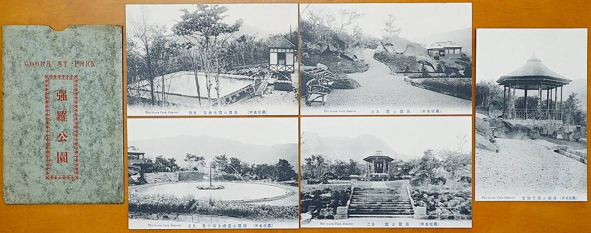 - 神奈川 箱根 強羅公園絵葉書5枚 紙袋付 検:音楽堂 水練上 プール 噴水場 庭園 神奈川県足柄下郡箱根町強羅 小田急箱根 箱根別荘地避暑地