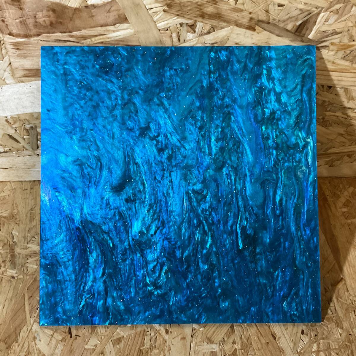 - アクリルパール板 エメラルド×グリーン流雲柄 ラメ入り ブルーマーブル模様