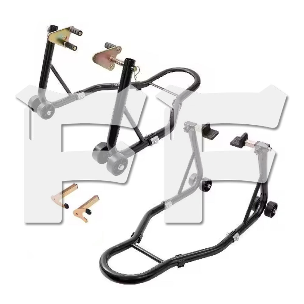 > 送料無料● オートバイスタンド モーターサイクルスタンド 850ポンド 前輪/後輪リフト タイヤ/オイル交換 軽作業 ブラック 前後セット