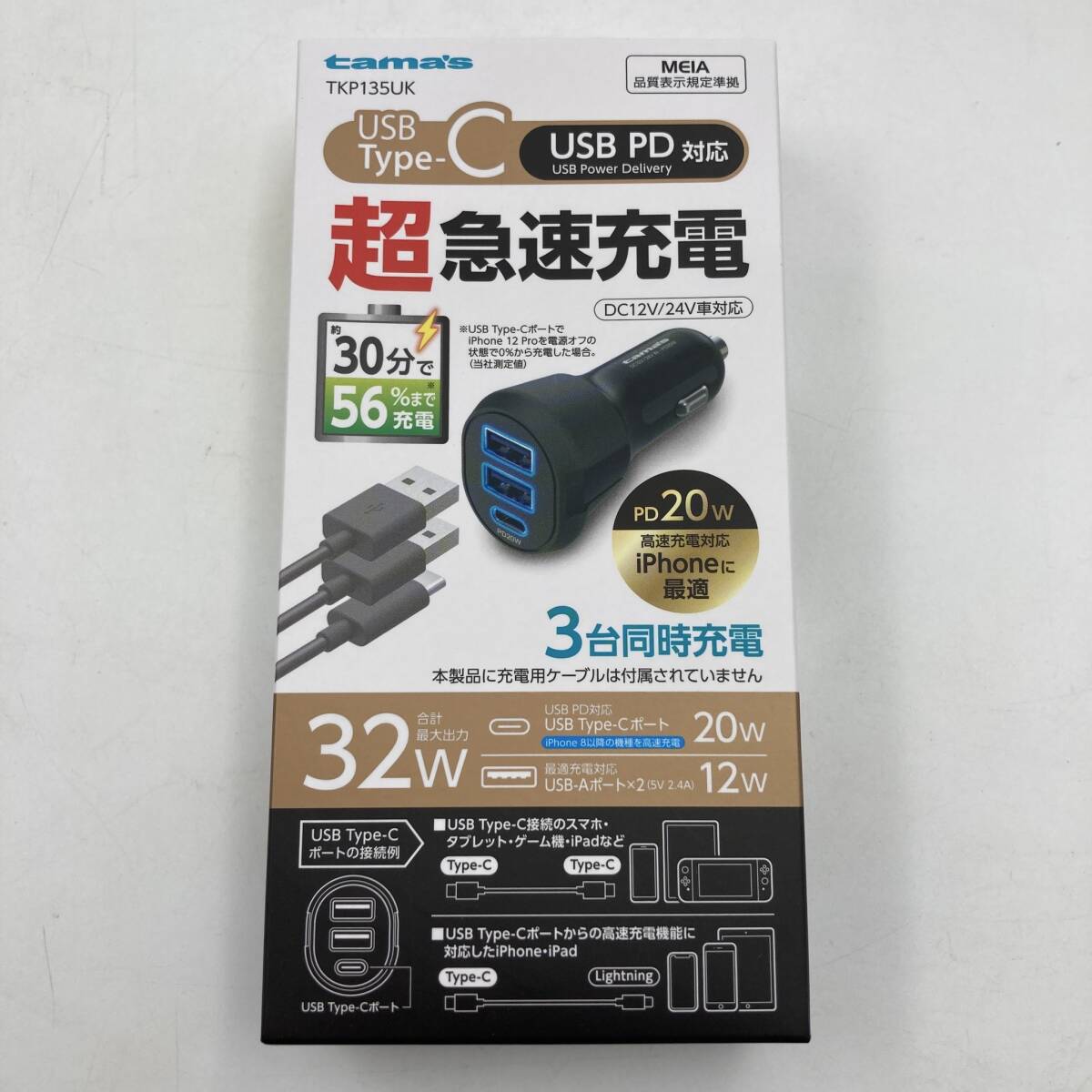 - 【未使用】超急速充電 USB PD対応 TKP135UK 3台同時充電 合計最大出力32W DC12V/24V車対応 多摩電子工業 PD20W カー チャージャー