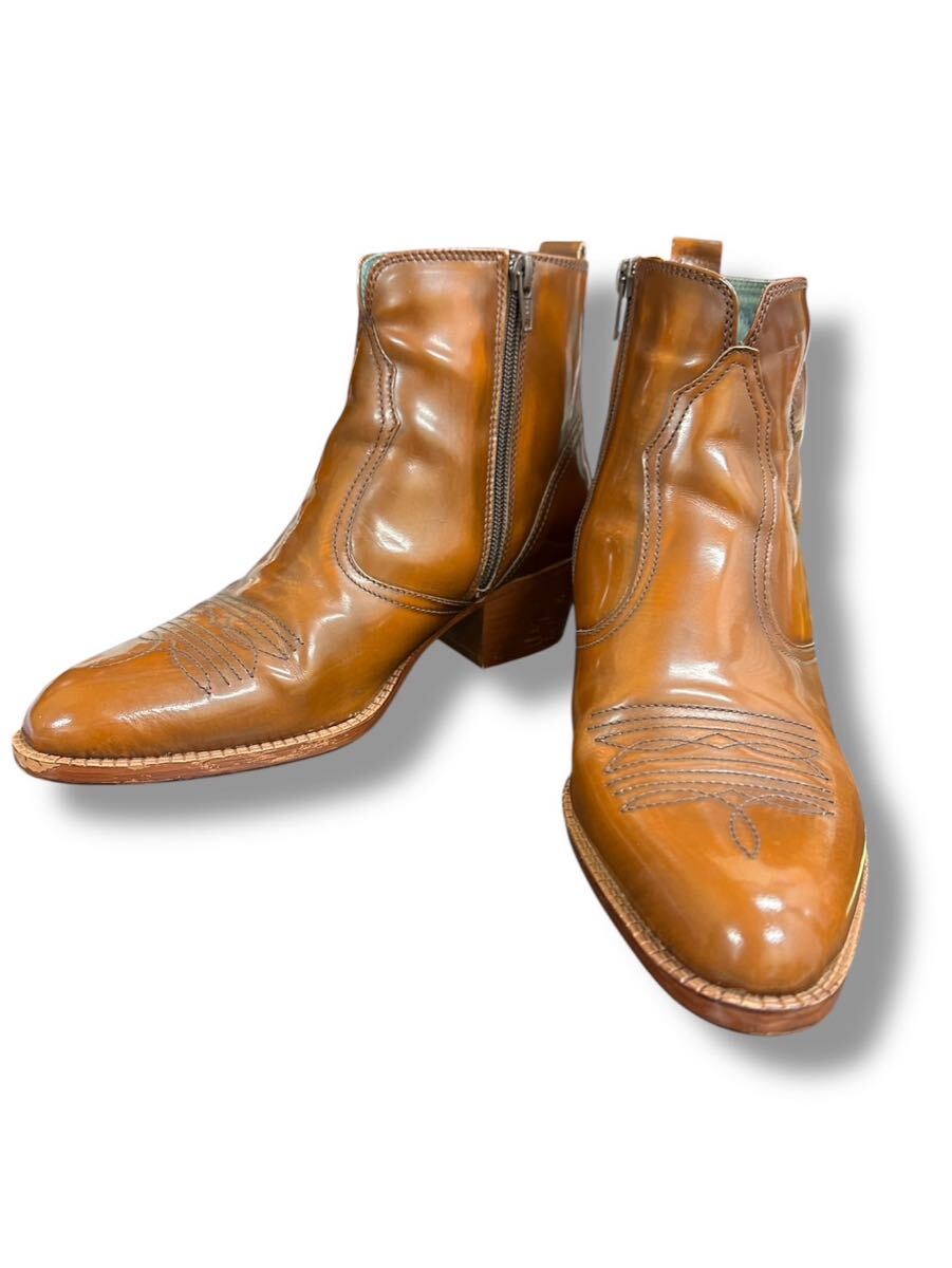 - A11362 美品 NEVADAネバダ社製 本革レザーウエスタンブーツ25.0cm サイドジップブーツ メンズショートブーツヒールブーツ 中古