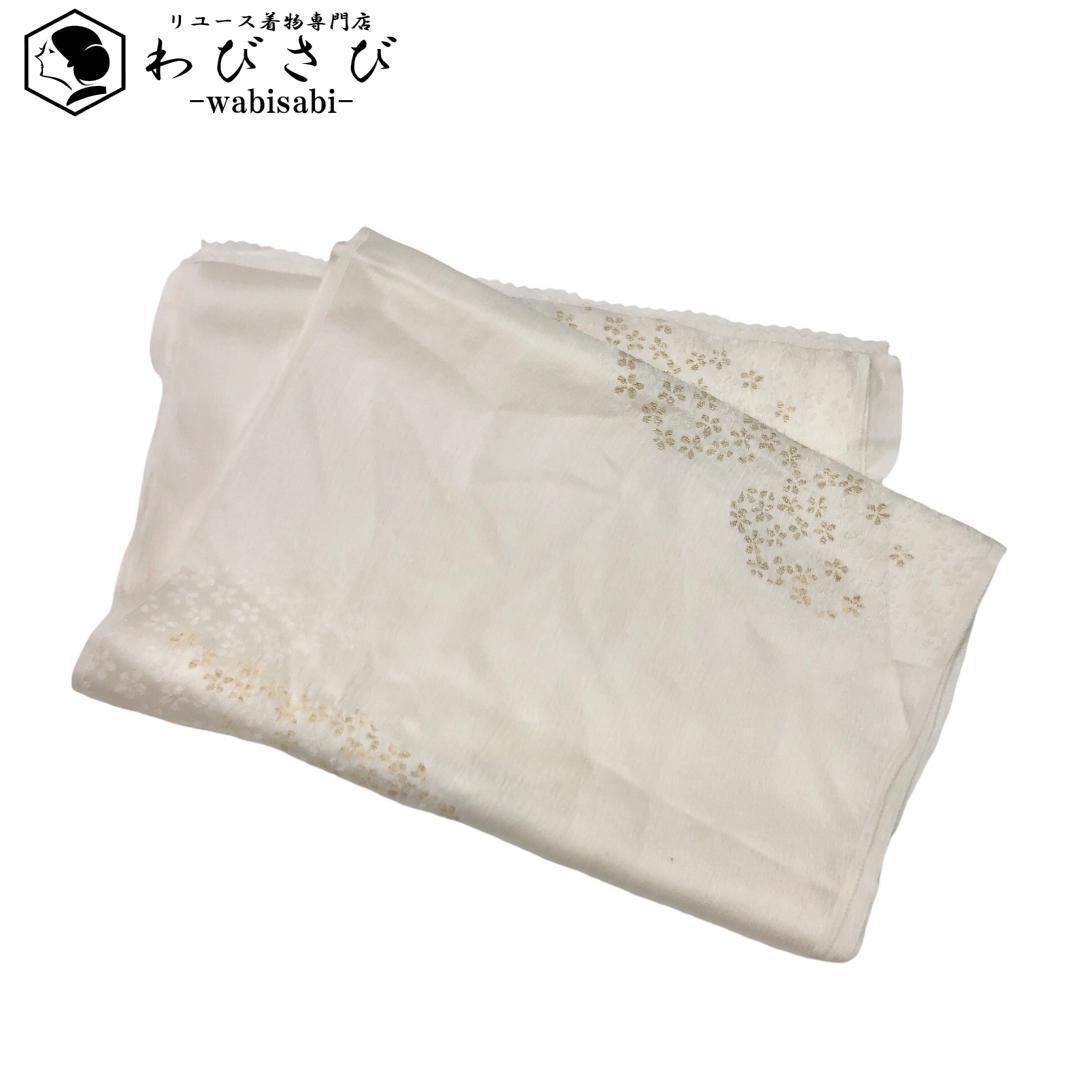 - 和装小物 帯揚げ 正絹 綸子 小花模様 乳白色 金糸 礼装 C-5818 着物 きもの kimono 和服 和装 中古 リサイクル着物 【送料無料】