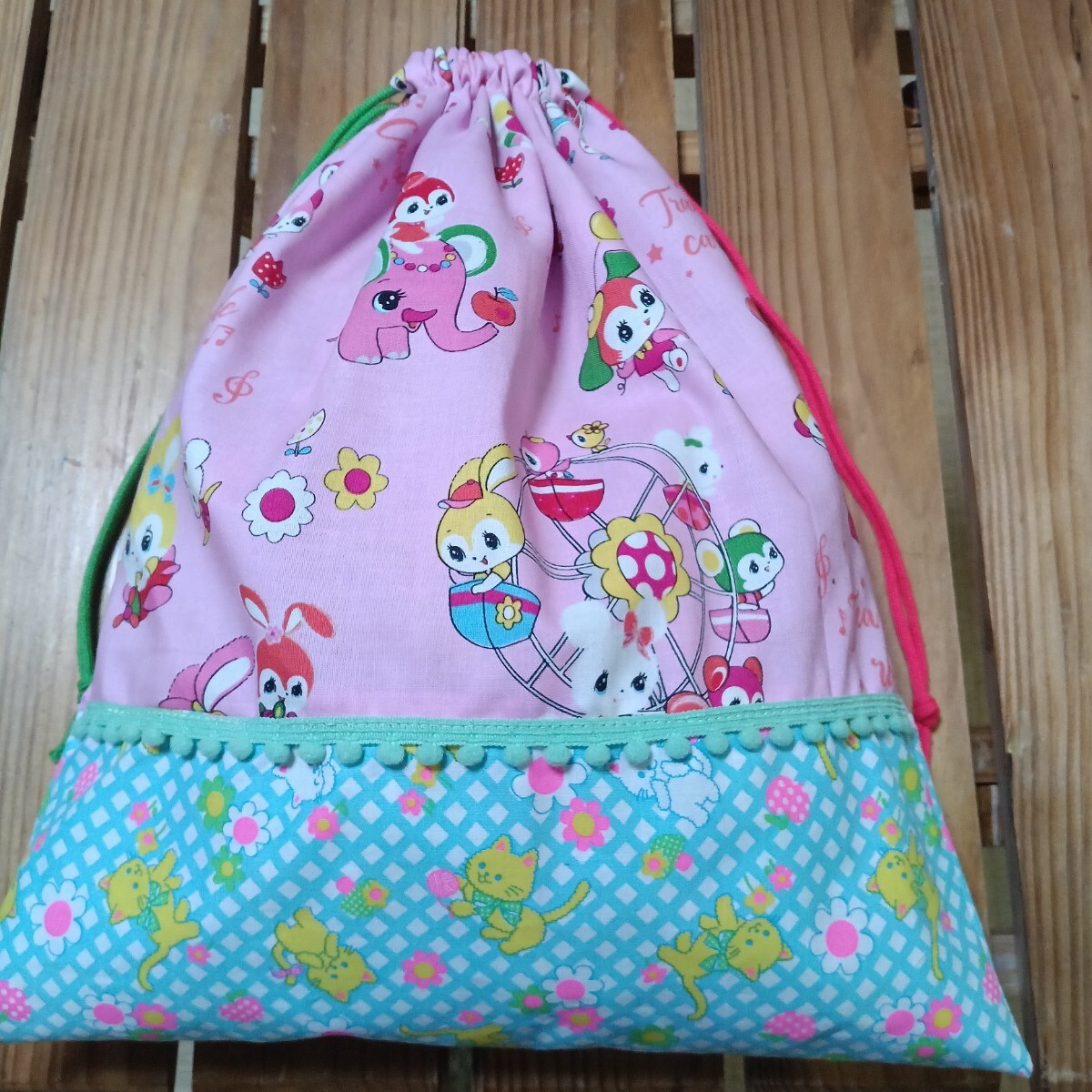 - 37×30 入園入学準備 ハニーチューン 体育着袋 お着替え袋 巾着袋 女の子 ゆめかわ