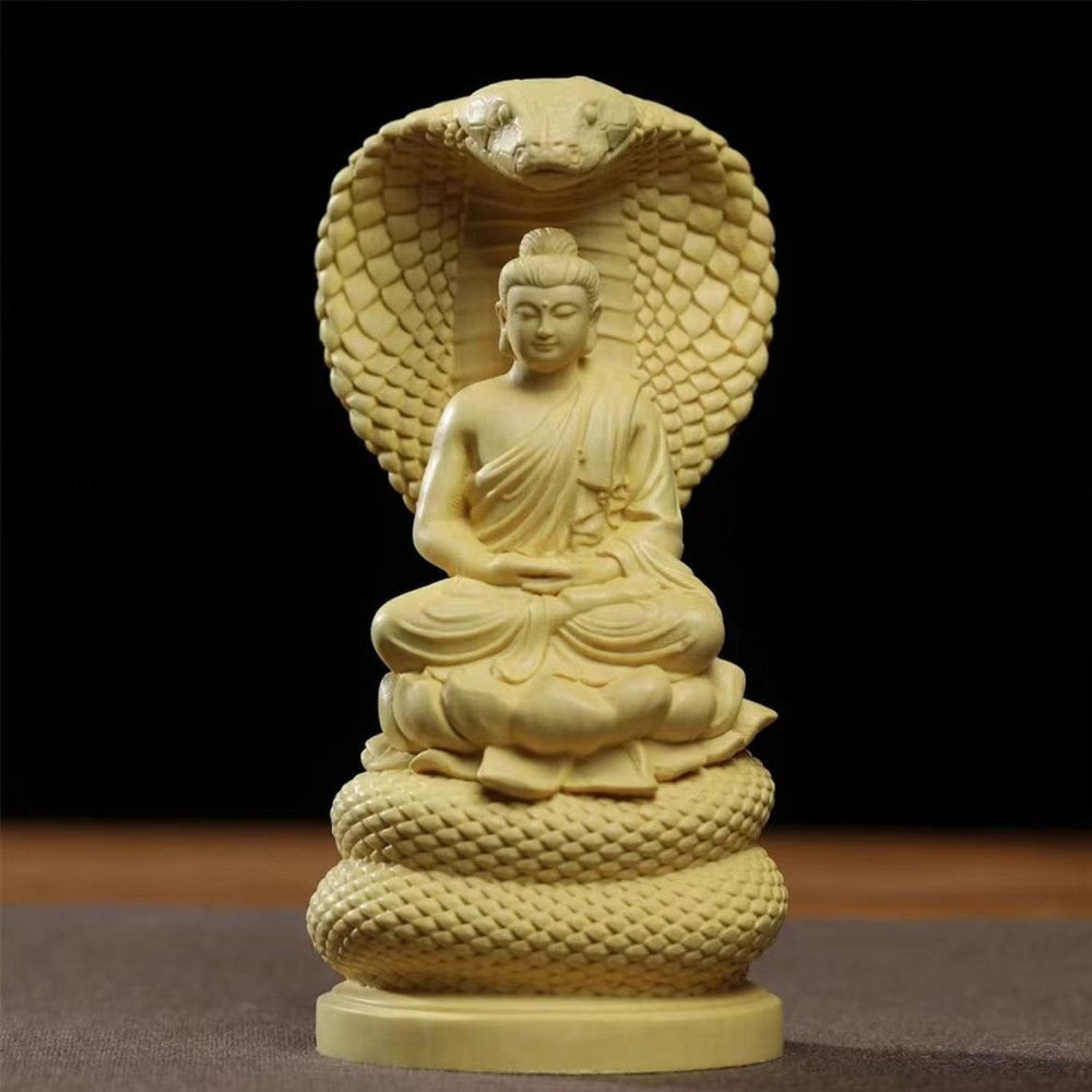 - 仏像 釈迦如来 座像 蛇仏如来 彫刻仏像 如来 坐像 釈迦如来像 曹洞宗 蛇座 木彫り仏像本尊 お釈迦様 座釈迦 総高13cm