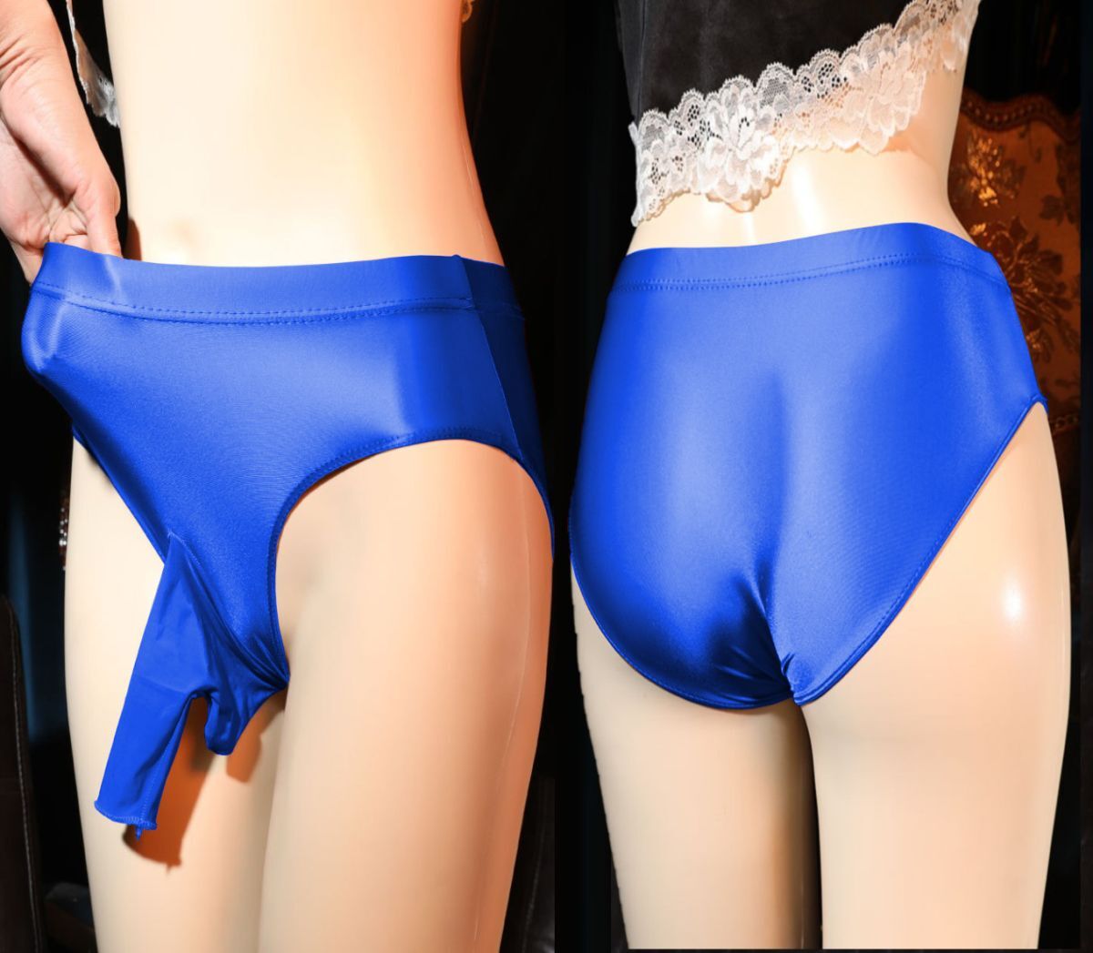 > 161-67-16 光沢 シルキー 竿付き ハイウエスト パンツ 【ブルー,Lサイズ】男性 メンズ フルバック ブリーフ ゲイ 男の娘 性転換 .1