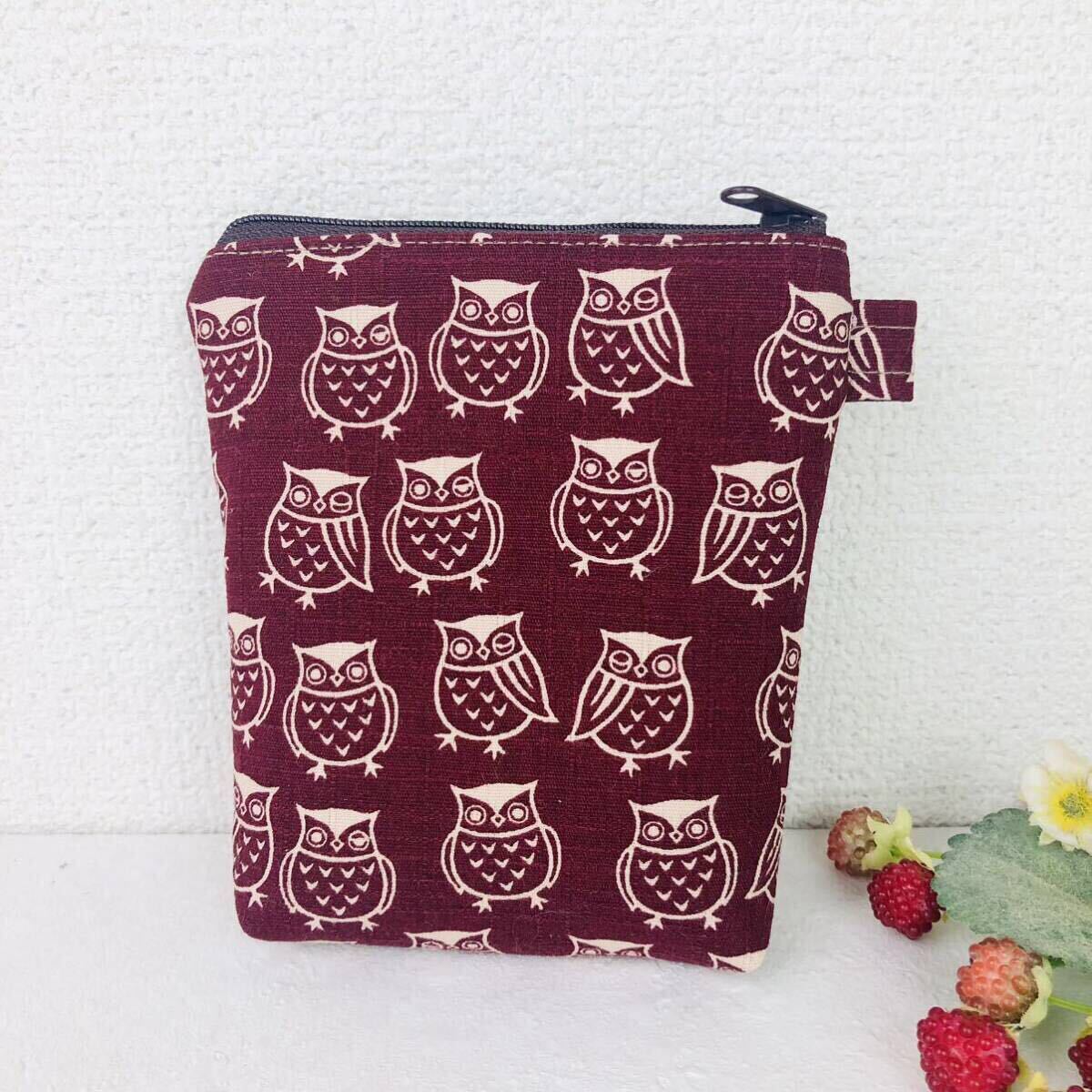 - ふくろう タバコポーチ ハンドメイド ポーチ サニタリーポーチ アイコスポーチ フクロウ 鳥 福郎 不苦労 縁起物 ギフトに