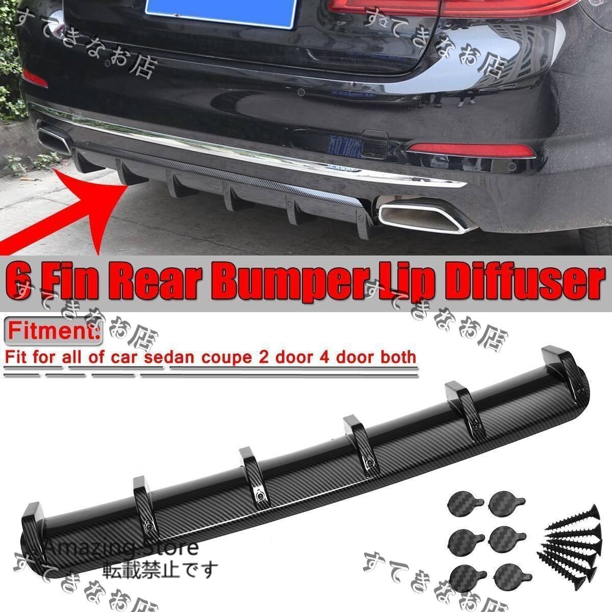 - グロスブラック/カーボンファイバールック 6 フィンサメ汎用リアバンパーリップディフューザーキット追加-にリアバンパースポイラーリ