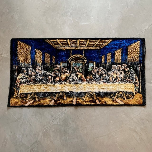 - 【48㎝×93㎝】イタリア製 キリストモチーフ 最後の晩餐 ベルベット ラグ■ビンテージ アンティーク インテリア ベロアマット 60s/70s